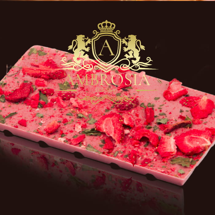 Pink Handmade Chocolate - RUBY with strawberries and mint